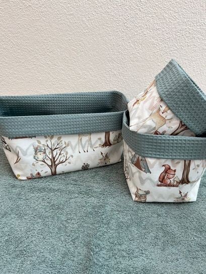 Diese tollen Utensilos sind eine perfekte Möglichkeit Kleinigkeiten wie Windeln, Cremes etc. aufgeräumt zu haben, aber trotzdem schnell drauf zugreifen zu können. Es ist die perfekte Ergänzung für unsere Wickelunterlagen, Bettschlangen und macht auch im Zimmer einiges her.